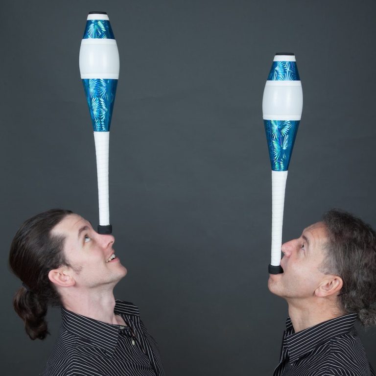 Vater-Sohn-Entertainment mit Jonglage, Einrad-Slapstick, Rola-Bola- und Leiterartistik