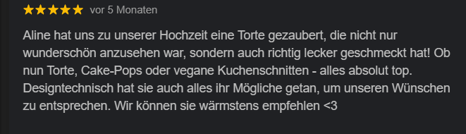 Was einst als kleines Herzensprojekt mit Motivtorten begann, hat sich über die Jahre zu meinem eigenen Unternehmen entwickelt. Heute darf ich mit meinen Tortenkreationen viele besondere Momente begleiten – vor allem Hochzeiten, aber auch Firmenfeiern und private Events.