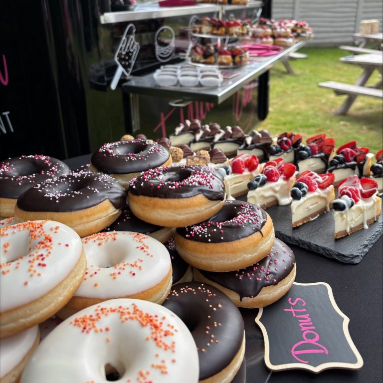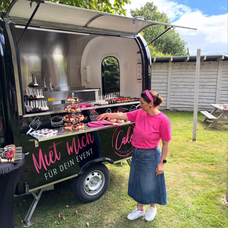 Ein besonderes Highlight ist unser „kleiner Wagen“. Mit ihm kommen handgefertigte Desserts direkt zum Event – von Cake Pops über Cheesecake am Stiel bis hin zu Donuts und weiteren süßen Spezialitäten. Der stilvolle Wagen kann für Hochzeiten, Firmenfeiern oder private Veranstaltungen gebucht werden und wird mit seinen süßen Köstlichkeiten und Kaffeespezialitäten schnell zum Blickfang auf jedem Event